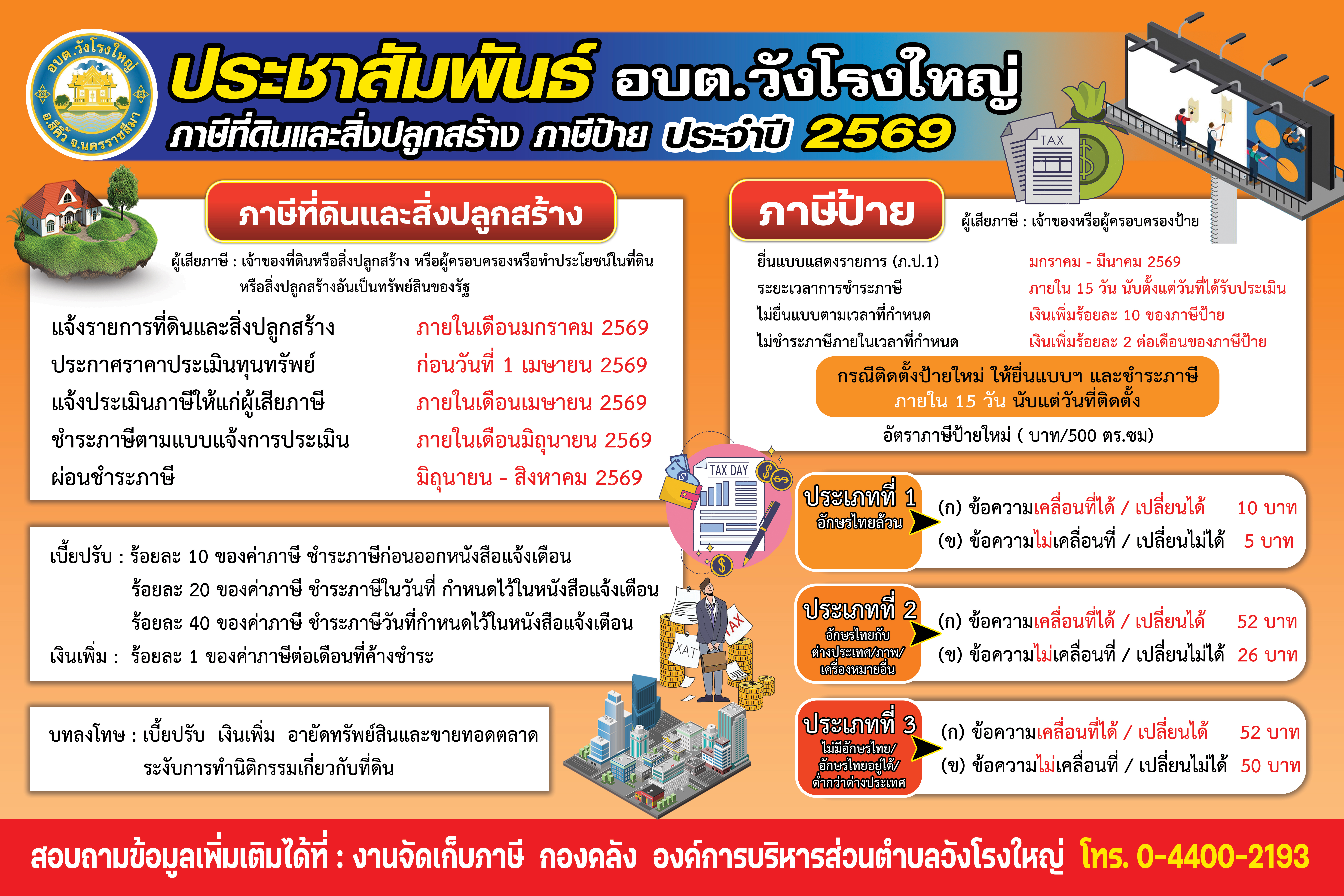 ประชาสัมพันธ์ ภาษีที่ดินและสิ่งปลูกสร้าง และภาษีป้าย ประจำปี 2569